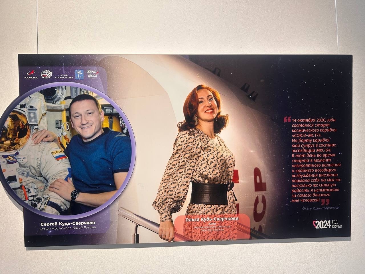 В ноябре 2024 года к проекту «Жена Героя» присоединились жены космонавтов. При поддержке Госкорпорации «Роскосмос», ФГБУ «НИИ Центр подготовки космонавтов им. Ю.А. Гагарина» и администрации Звездного городка создана планшетная экспозиция «Семья Героя. Космос». Презентация проекта прошла в Зеркальном зале Дома космонавтов в Звездном городке. На открытии глава Звездного городка Евгений Баришевский отметил, что «За каждым мужчиной, мужем, героем стоит женщина! Всегда рядом, всегда поддержит в любом деле и начинании. Выставка объединила команду единомышленников. Уверен, что этот проект ждет большое будущее».