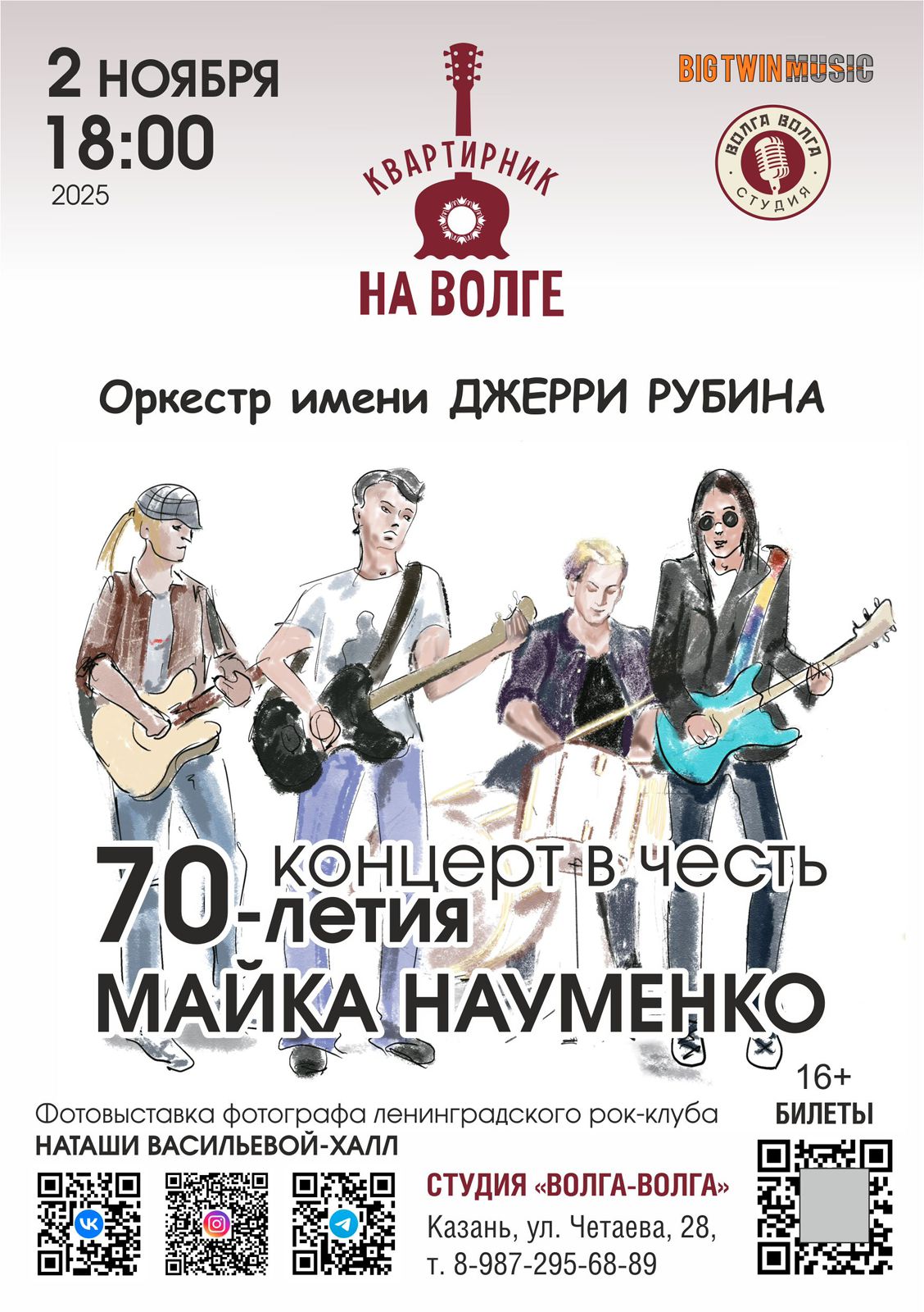 Это совместный проект казанских и московских музыкантов: по приглашению группы «Волга-Волга» в ее студии 2 ноября выступит оркестр им. Джерри Рубина. В программе – концерт, автограф-сессия, возможность приобрести редкий мерч.