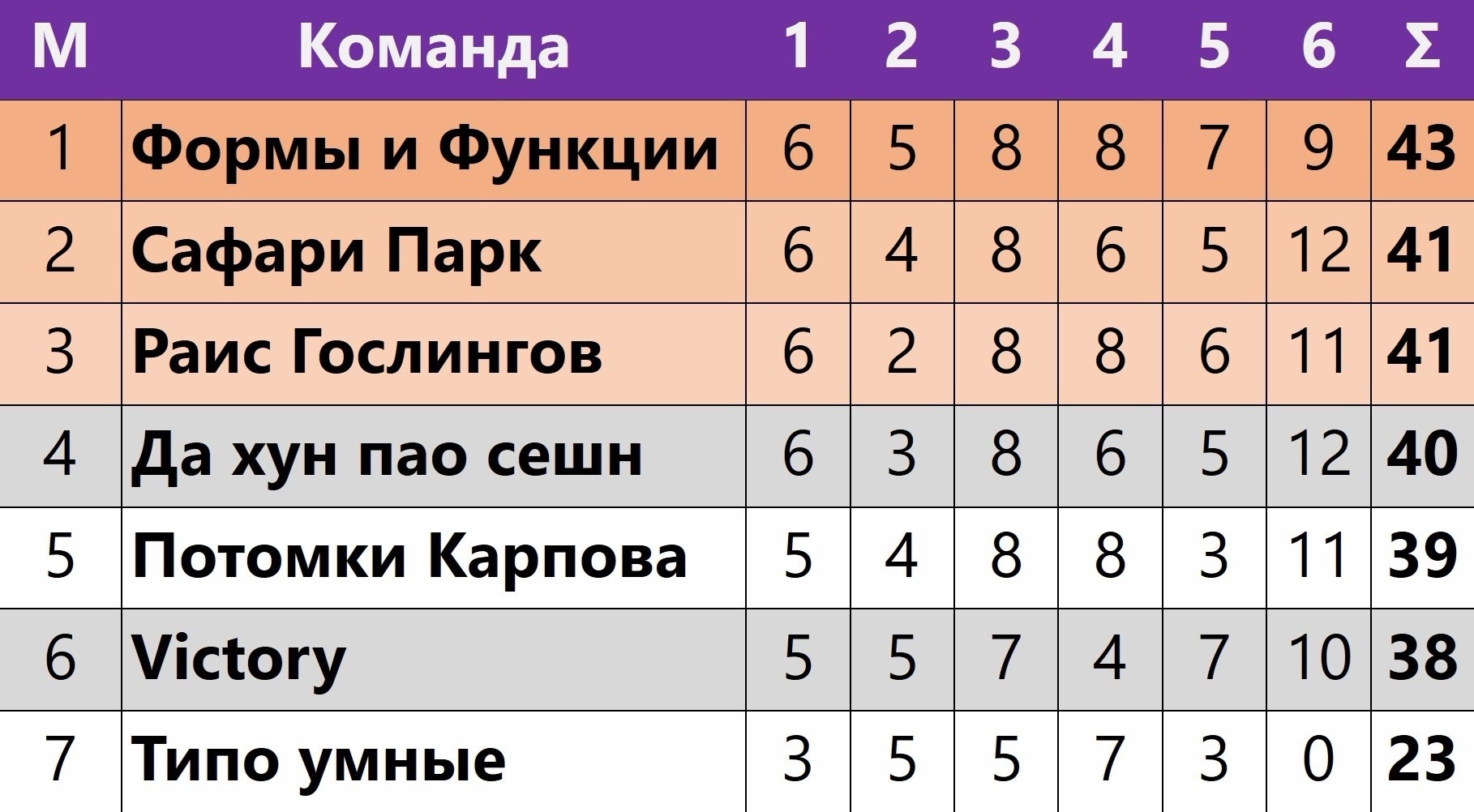 С самого начала игры лидерство захватила команда «Формы и функции». Соперникам так и не удалось ее обыграть, хотя они были близки к этому. Кстати, именно студенты этого коллектива ещё до начала игры рассказывали «Вечерней Казани», что пришли «просто приятно провести вечер».