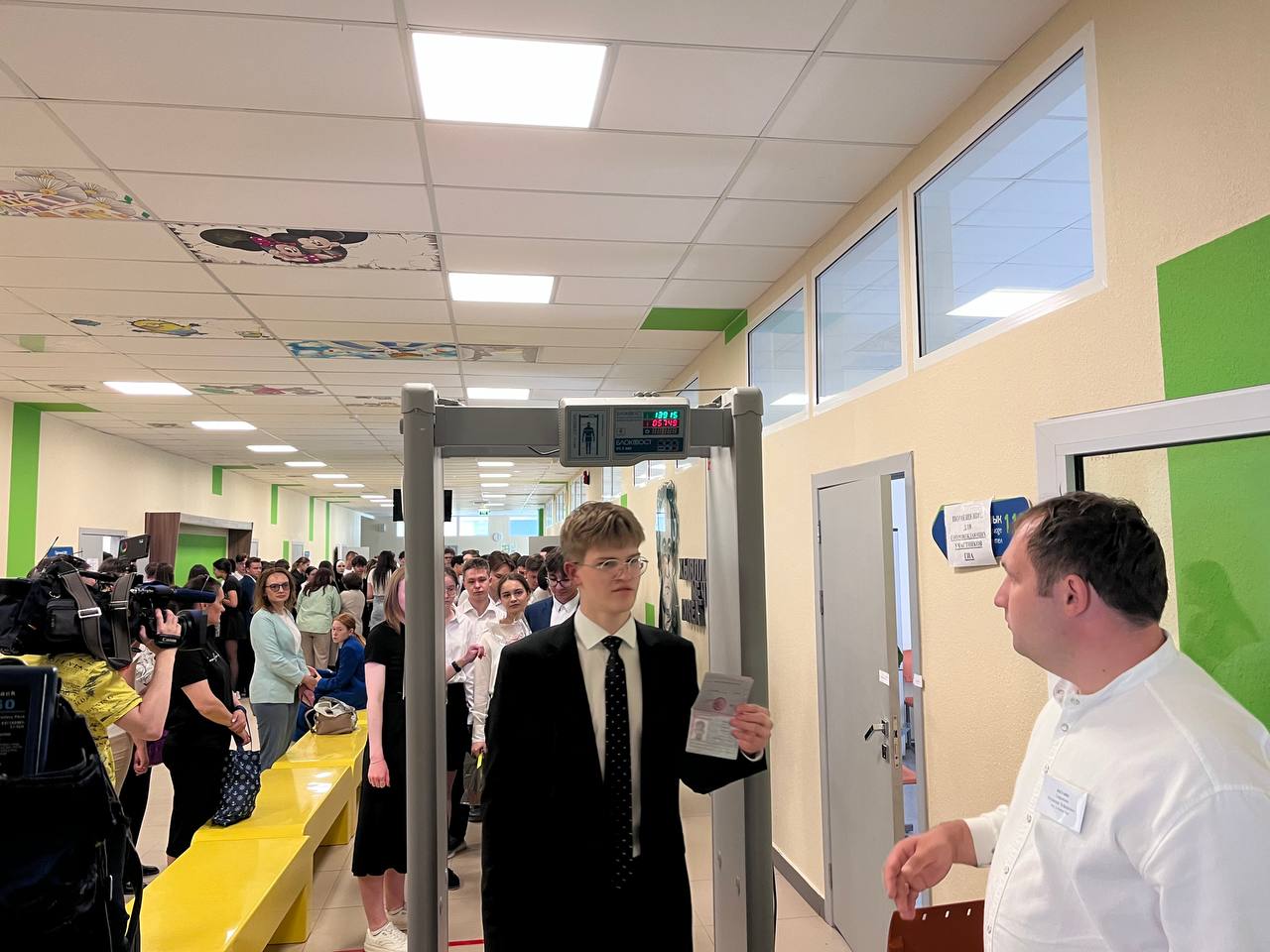 В коридоре перед металлоискателем им необходимо было подождать в очереди минут 10-15. Все лишние предметы, а таковыми являются все, кроме ручки, шоколадки, бутылочки с водой и паспорта, нужно было оставить в сумках. Ребята хоть и переживали, но пока сохраняли спокойствие и оптимизм в присутствии одноклассников и учителей.
