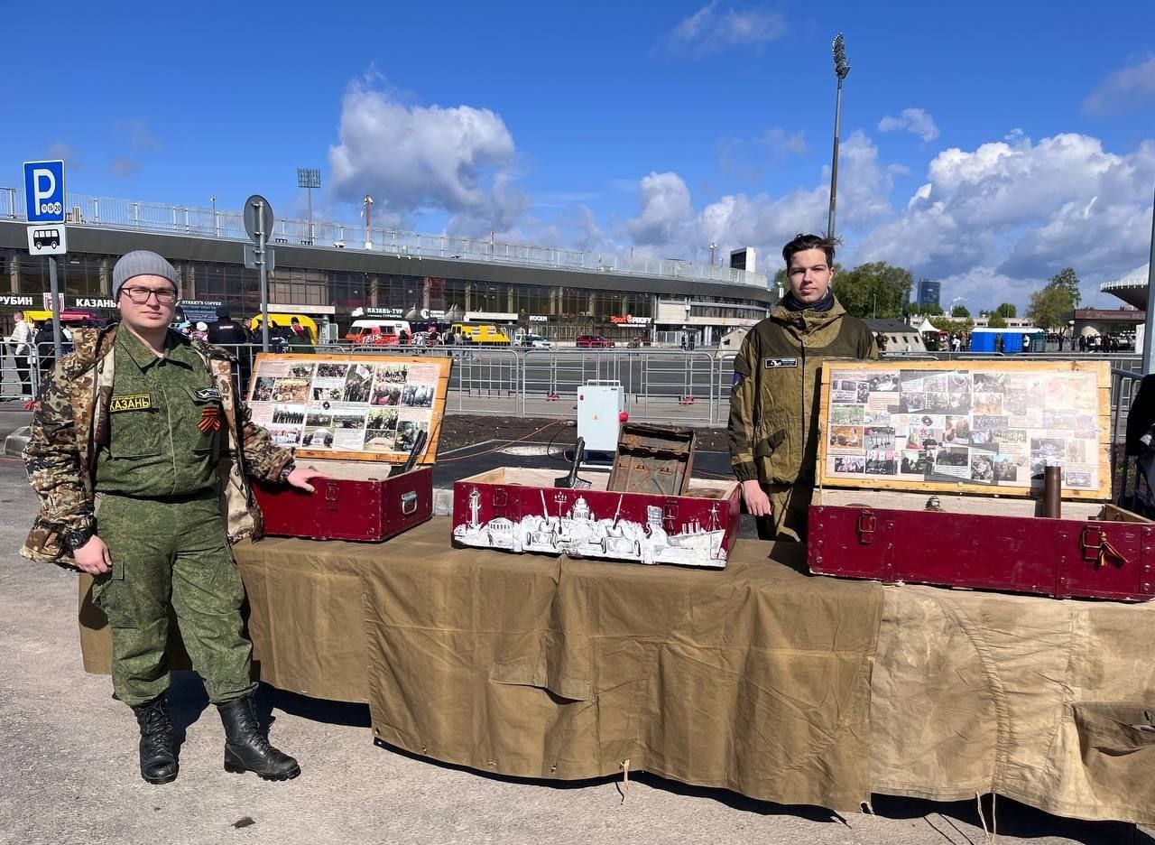 Все желающие могут сфотографироваться у исторической фотозоны с тематическим баннером и посмотреть находки, которые поисковики Татарстана привезли из зоны проведения Специальной военной операции.