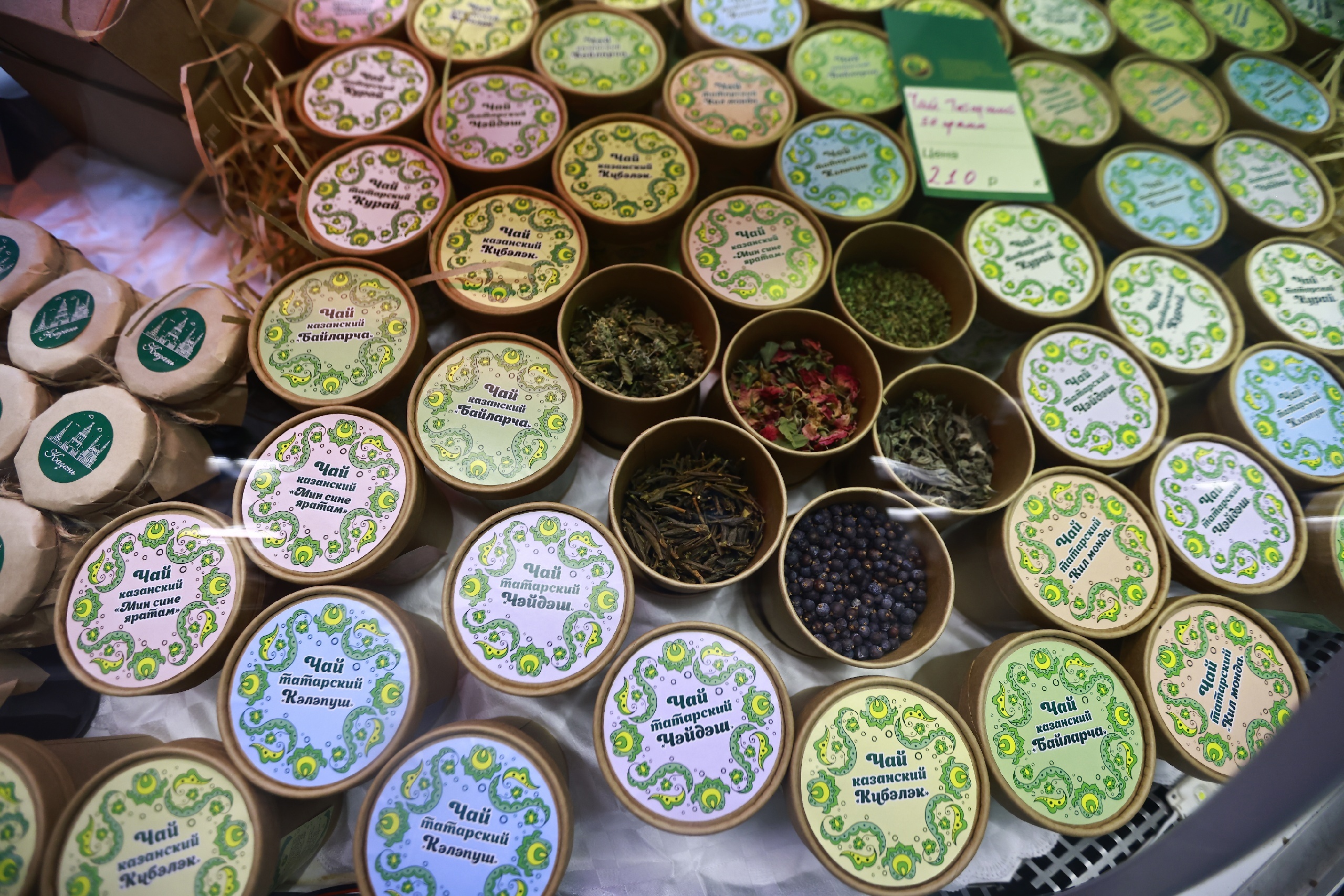 А предпринимательница Гульшахида Озсой продавала чаи. Оформлена продукция в национальном стиле, название на татарском, на упаковке традиционная символика. Сам чай закупают в Иране и Турции, а вот травы к нему местные, татарстанские. Например, ягоды можжевельника собирают в Высокогорском и Пестречинском районах, мяту – в Верхнем Услоне.