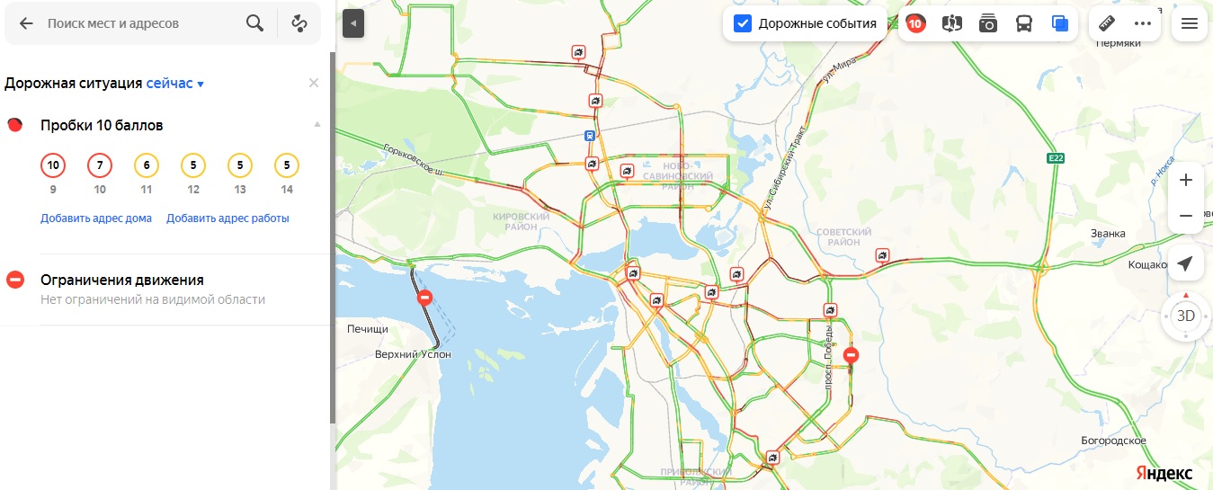 В столице Татарстана, согласно сервису «Яндекс.Пробки», утром установились 10-балльные пробки из-за непогоды. Самое затрудненное движение зафиксировано на выезде из центра города. Водителей по возможности просят воздержаться от поездок на личном транспорте.