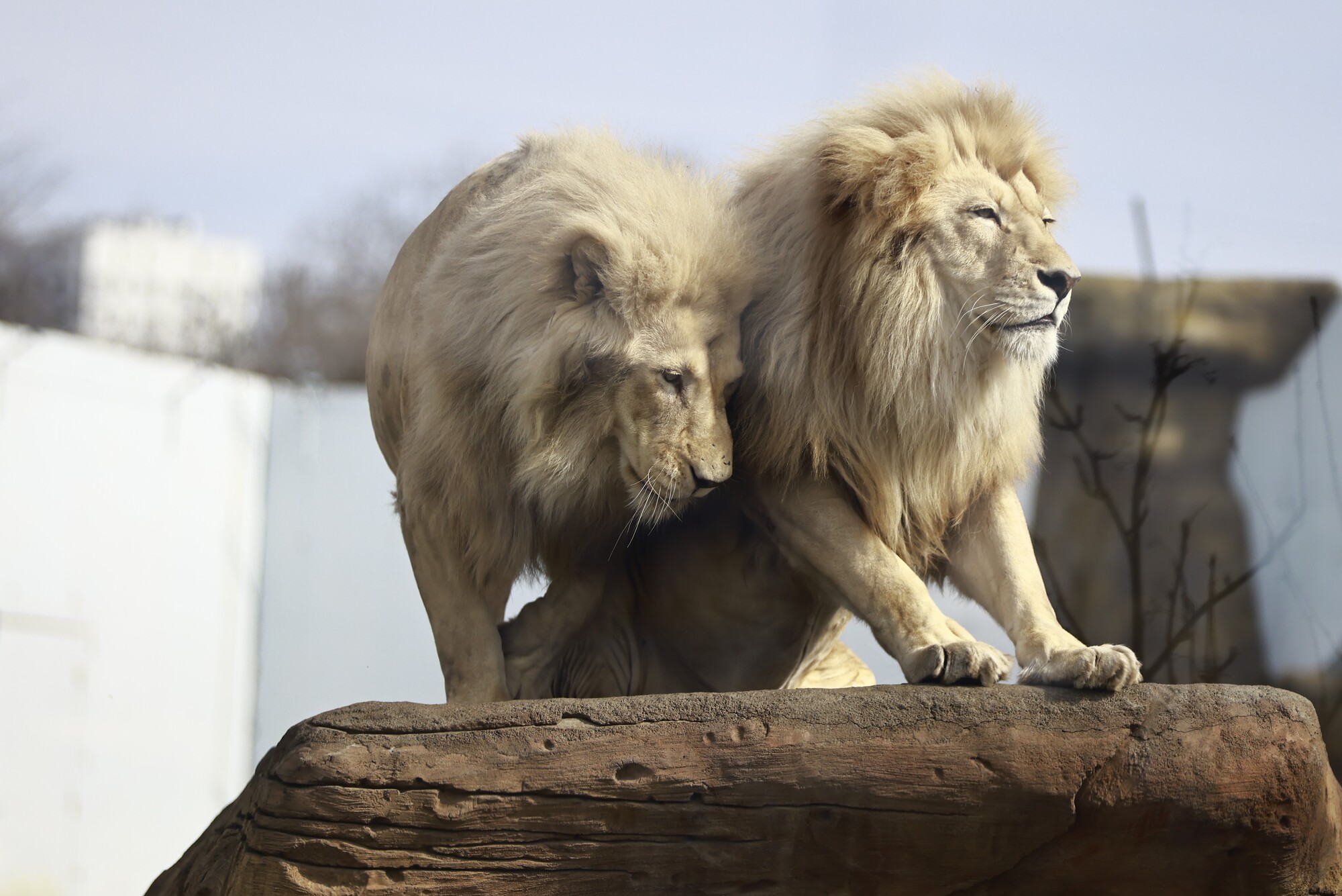 Вторыми нас повели к львам - двух кошачьих зовут Крикс и Каспер. Раньше они жили в цирке, однако уже пару лет могут радоваться спокойной жизни в Казанском зооботсаду. Львы ладят друг с другом очень хорошо - росли вместе с самого детства.