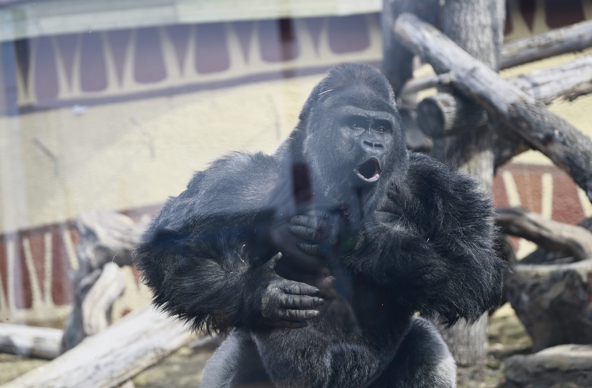 Рядом с гориллами располагается и вольер шимпанзе, их привезли из Швейцарии. Шимпанзе зовут Малик, Пили, Диджит, Пембели и Мойо. Самому старшему из них в мае будет 33 года, а младшему всего 10 лет.