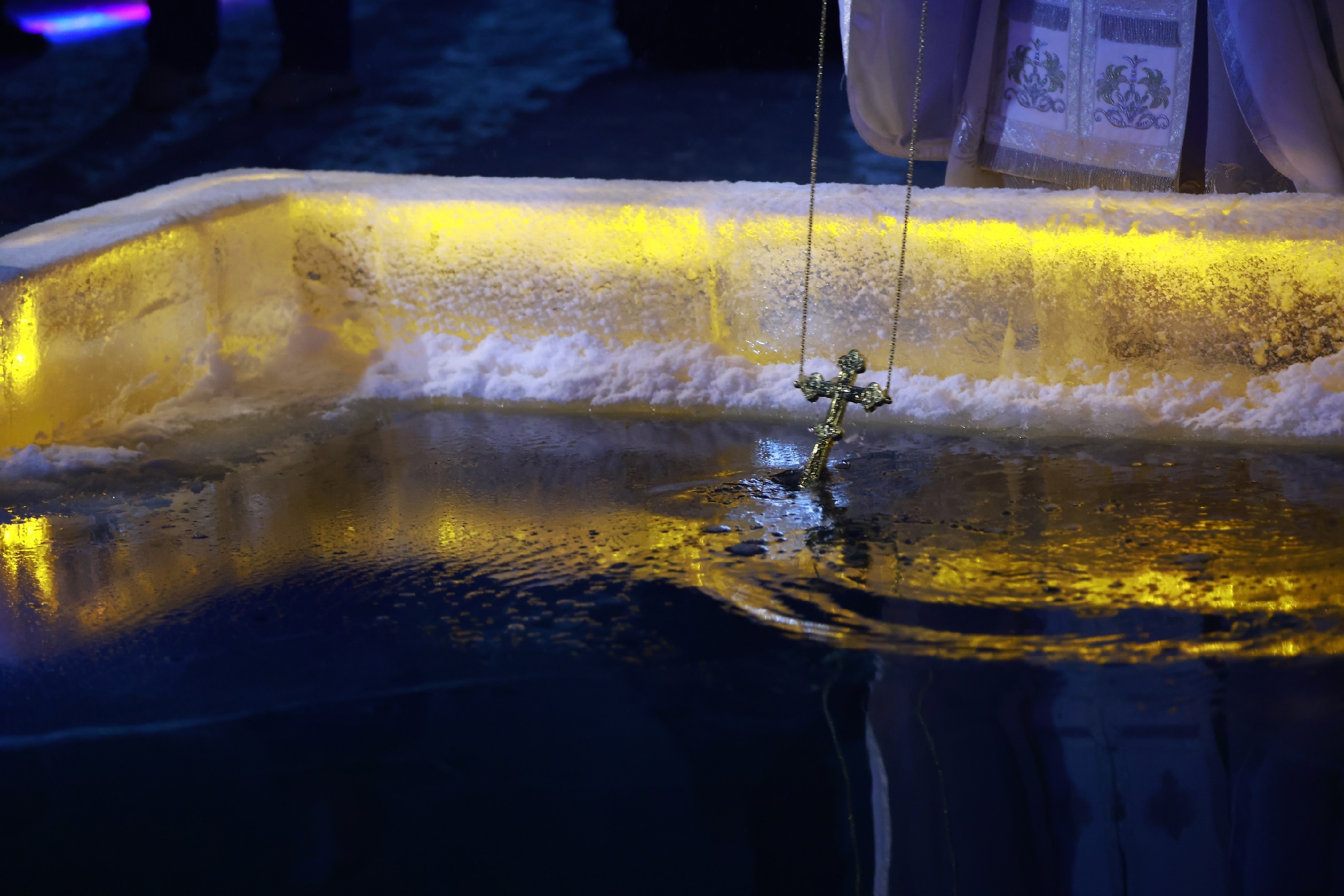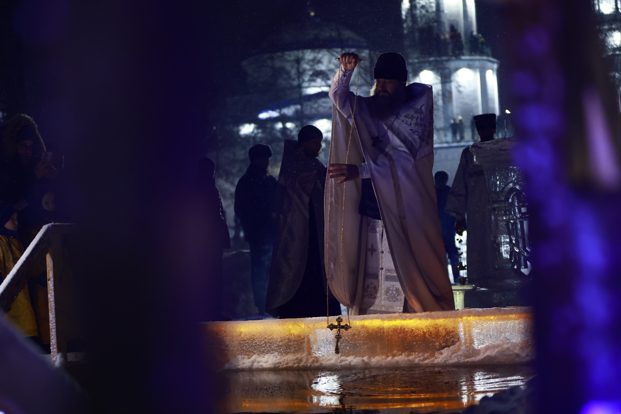 Уже после службы в храме служители церкви совершают крестный ход, также известный как «ход на Иордан», – благодаря нему происходит Великое освящение водоема, вода в котором после этого считается святой.