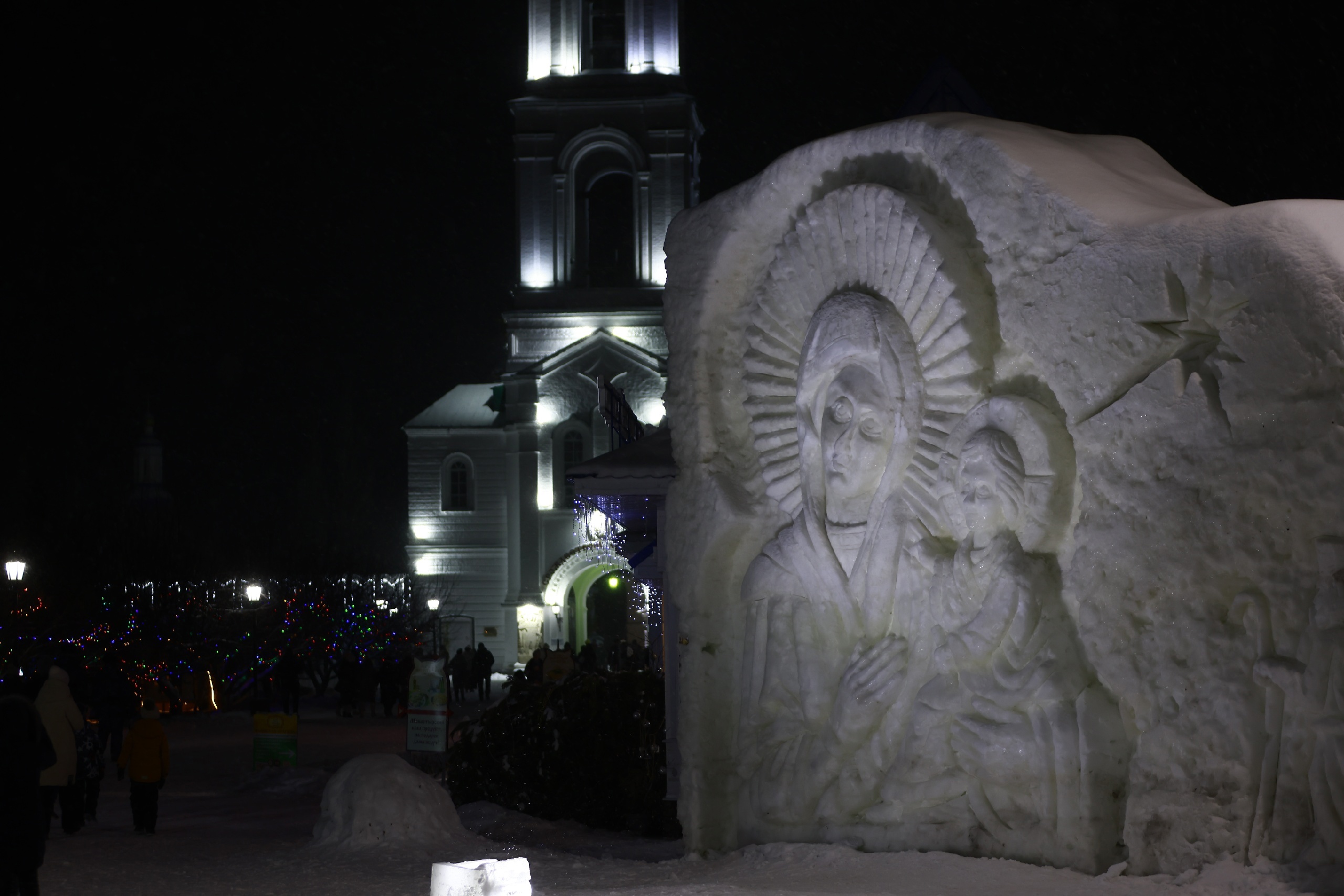 Говоря о красотах Раифы, нельзя не отметить украшения монастыря к Крещению: Татарстанская епархия позаботилась о том, чтобы перед стенами монастыря возвели снежные скульптуры ангелов и Божией Матери, символизирующих «благую весть».