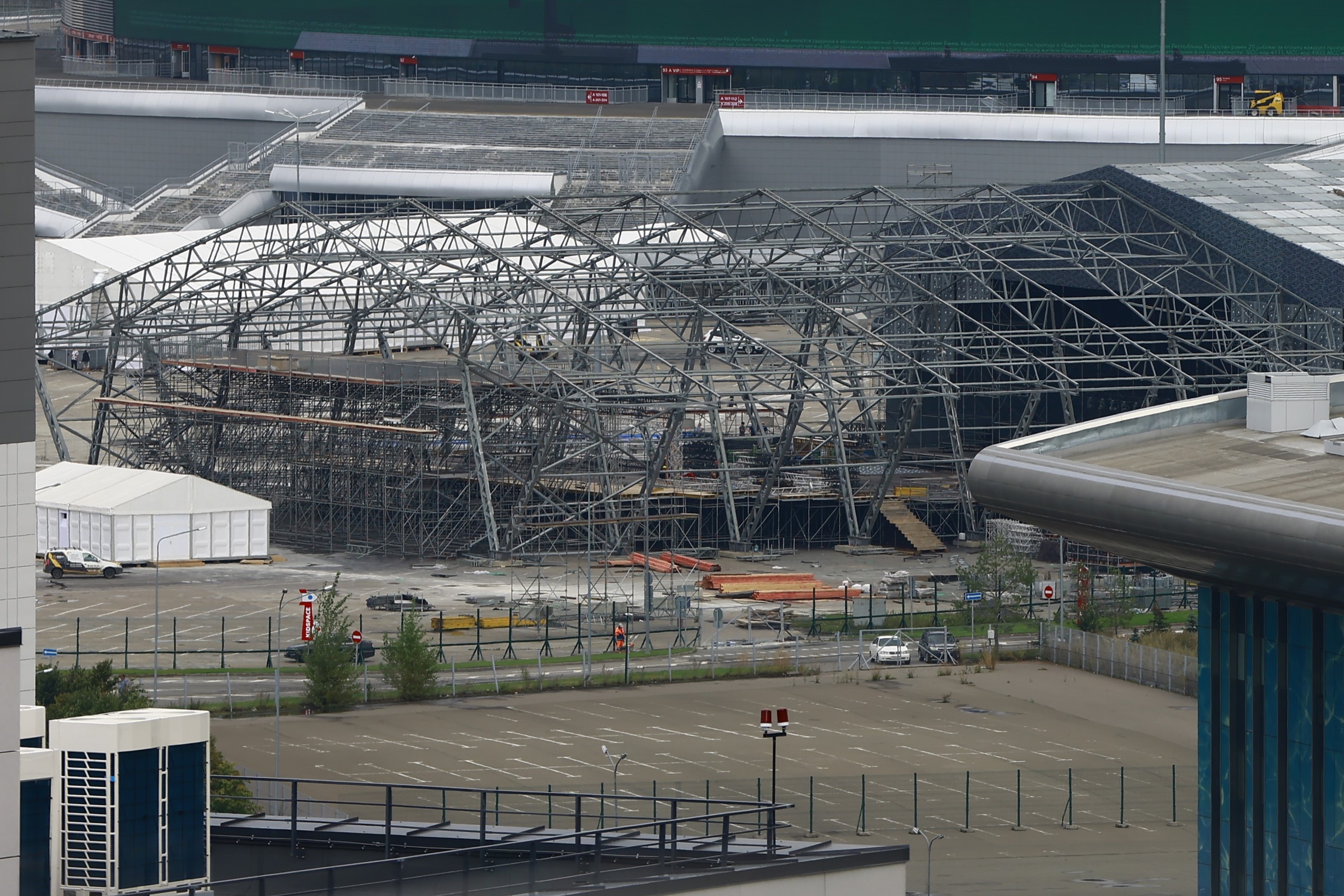 Монтаж сцены для концерта сейчас завершен уже примерно на 80 процентов, отметил спикер. Напомним, New Wave Hall строится уже с конца июля - вот так площадка выглядит с высоты птичьего полета.