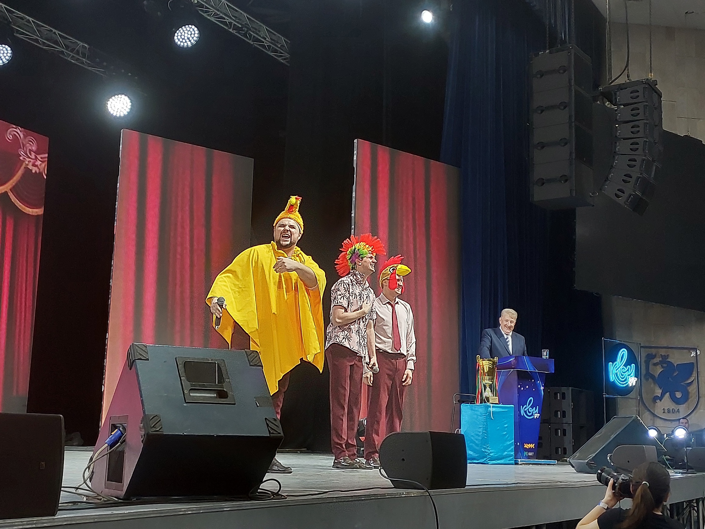 Сперва выступила детская команда КВН, и ребята справились славно, но настоящий «разогрев» случился, когда на операторской площадке возникли проблемы со звукорежиссерским пультом. Спасать ситуацию пришлось ведущему, президенту татарстанского клуба КВН Андрею Кондратьеву. Также он, напомним, является председателем республиканской ЦИК, но на шоу выяснилось, что на день концерта он взял отпуск.