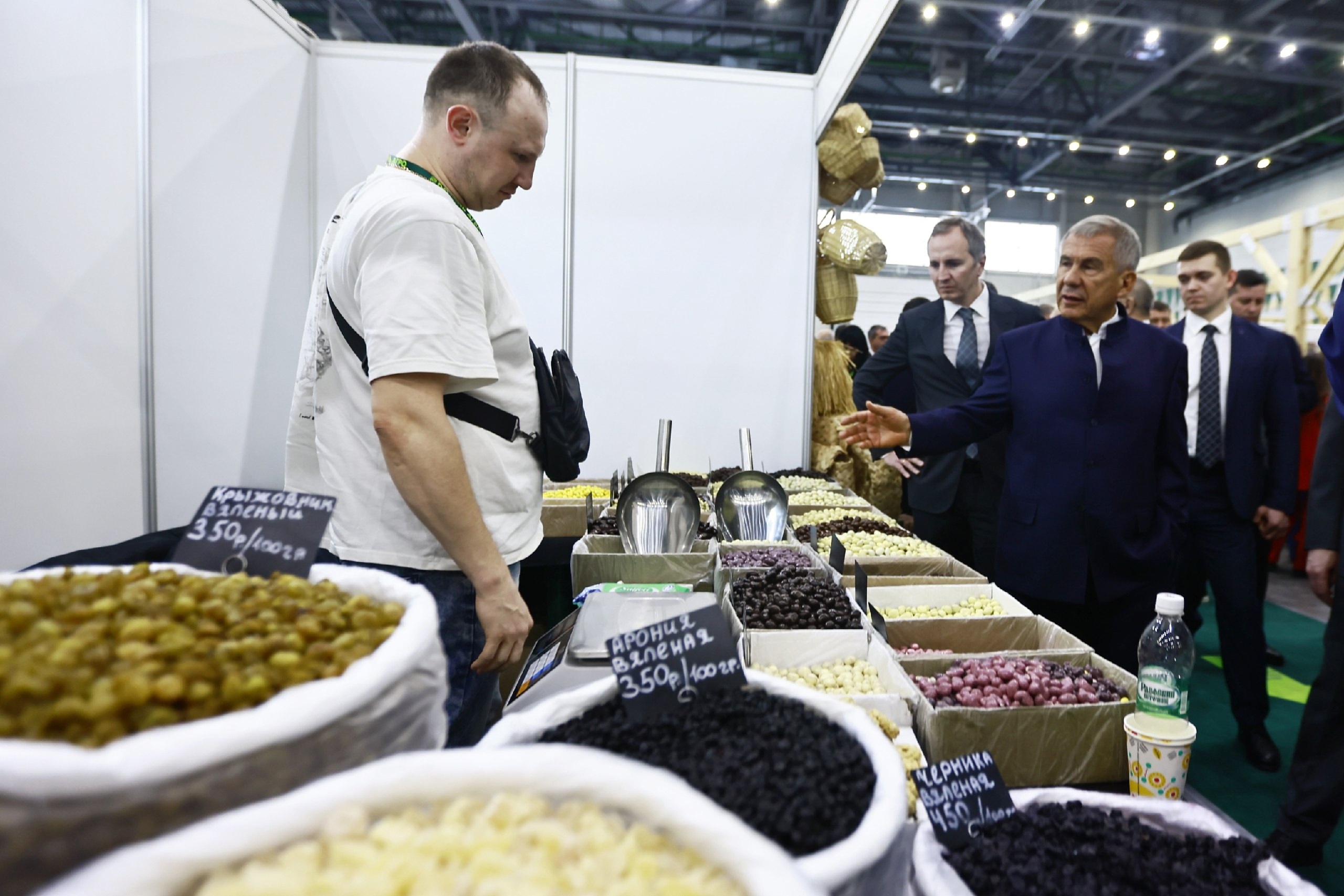 На площадке малых форм хозяйствования была представлена продукция кооперативов. Бизнесмены привезли с собой молочку, мясо, сладости, фрукты и овощи, готовые пирожки. Первым Минниханов попробовал яблоки. После осмотра «Вечерка» также решила вернуться и узнать, вкусные ли были фрукты. Все объяснил случай: на месте девушка-студентка уговаривала продавца продать ей хотя бы одно выставочное яблоко, но тот был непреклонен.