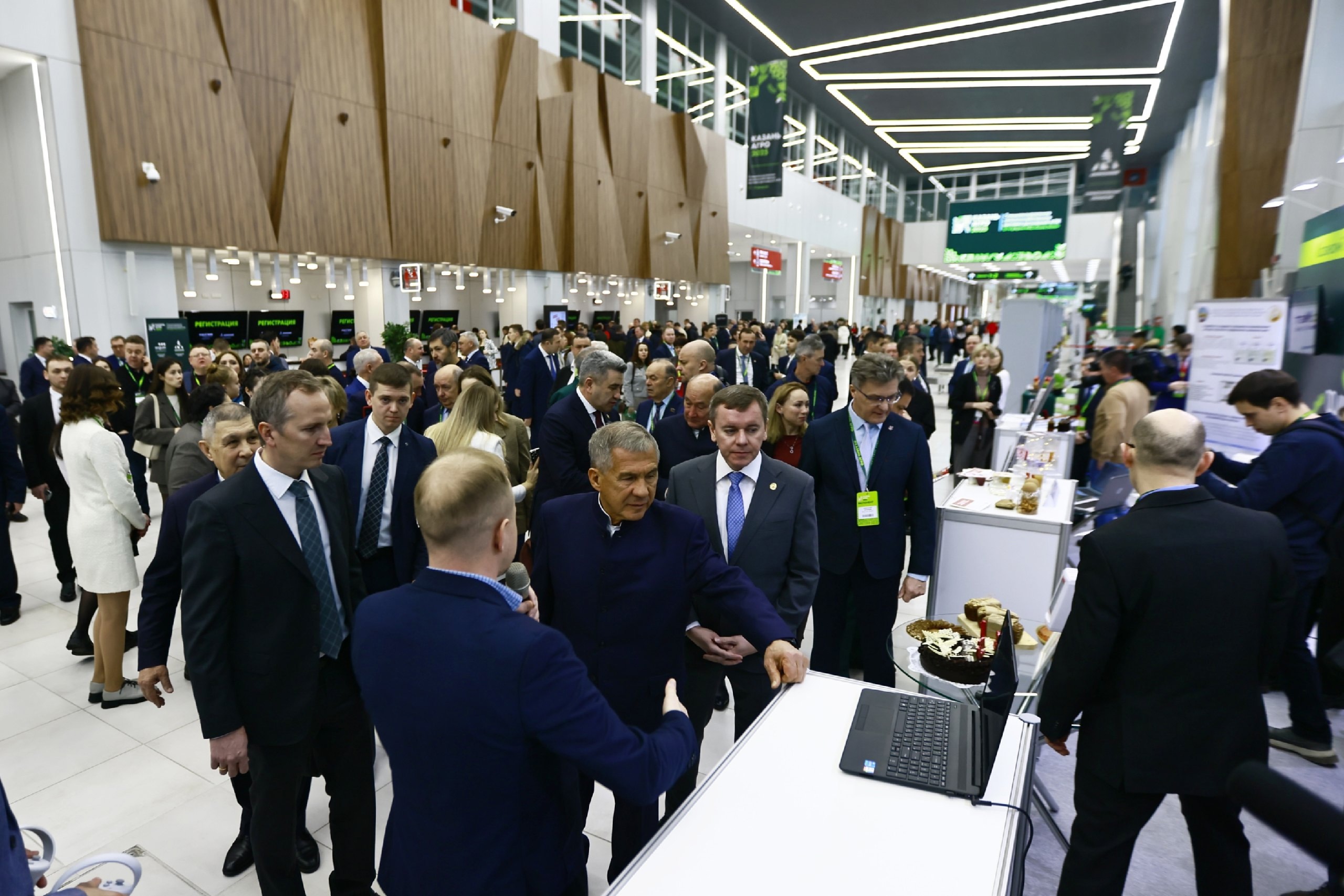 Ранним утром открылись двери казанского международного выставочного центра. Постепенно огромное светлое пространство становилось синим - это прибывали серьезные люди в костюмах. Среди них были аграрии, главы поселений, глава Минсельхозпрода Марат Зяббаров и раис республики Рустам Минниханов. В выставке приняли участие 300 компаний и 1,2 тысячи человек. Все экспозиции были на общую тему сельского хозяйства, но при этом оставались очень разными.