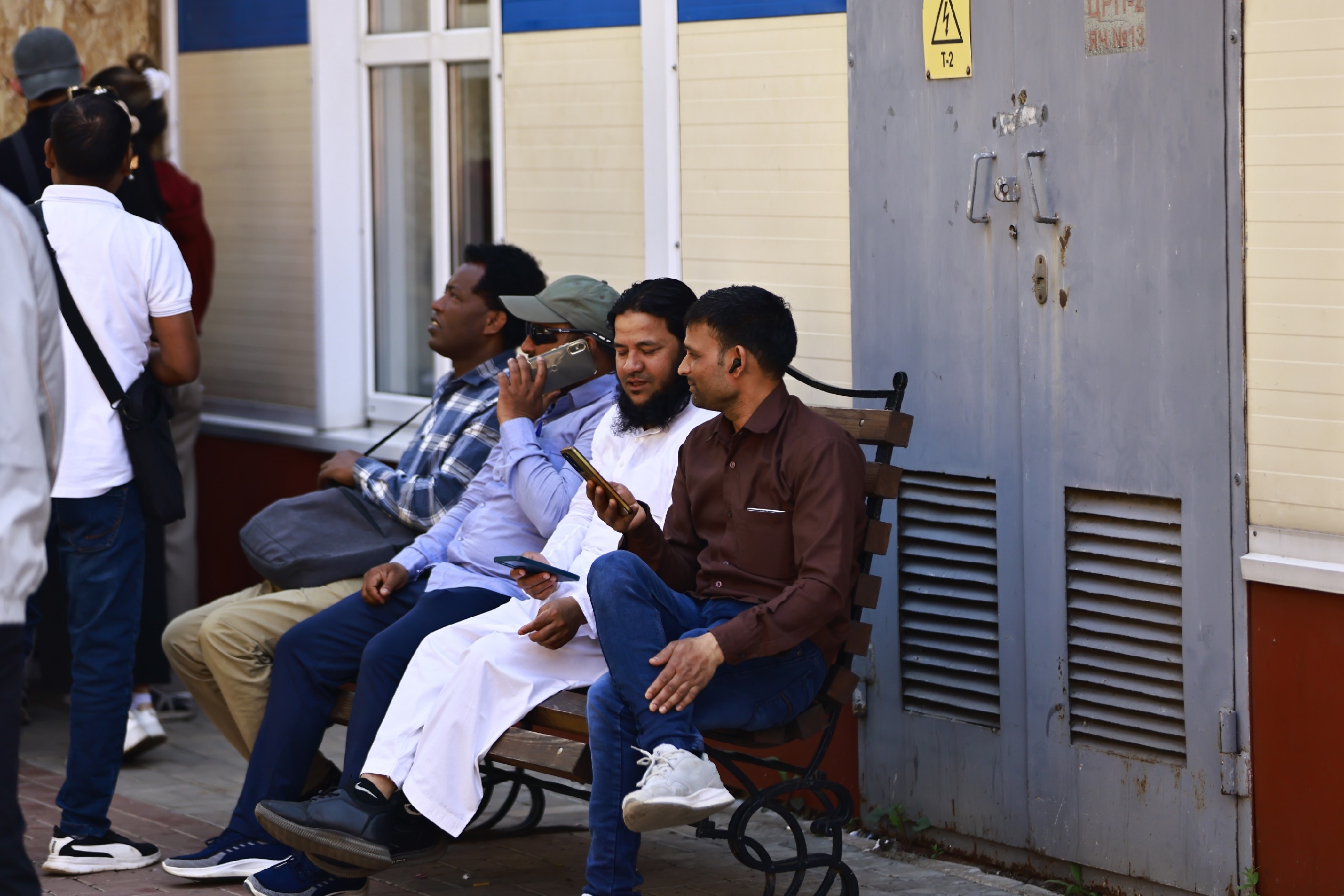 Впрочем, большинству приезжих приходится «ждать своего часа» днями, иногда и неделями. В очереди также были представители арабских, африканских и центральноазиатских стран разных возрастов, от молодых студентов до пенсионеров.