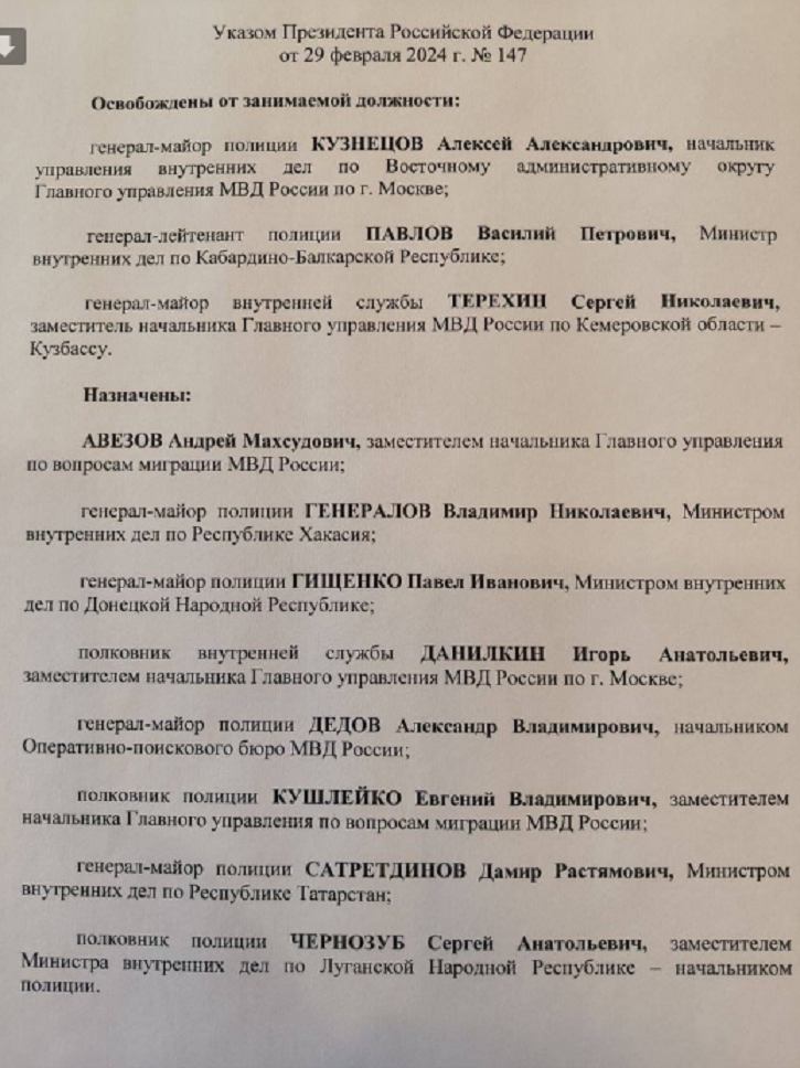 Новым руководителем МВД по Татарстану назначен генерал-майор полиции Дамир Сатретдинов. Фото приказа о назначении есть в распоряжении редакции «Вечерней Казани».