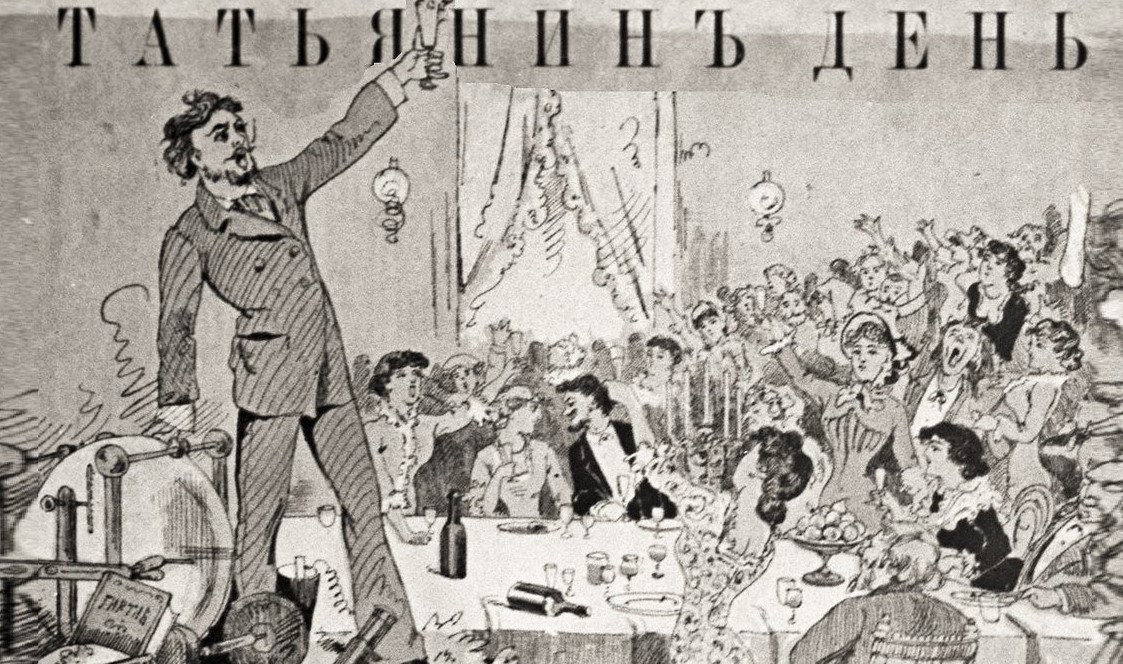 А вот выдержка из фельетона Антона Павловича Чехова: «Татьянин день — это такой день, в который разрешается напиваться до положения риз даже невинным младенцам и классным дамам. В этом году было выпито все, кроме Москвы-реки, которая избегла злой участи благодаря только тому обстоятельству, что она замерзла».