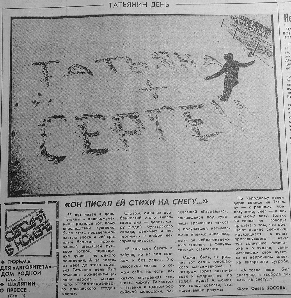 В 90-е годы «Вечерняя Казань» не раз в своих статьях писала об истории, традициях и народных приметах на Татьянин день. На фотографиях — номера газеты за 1993 и 1994 годы.