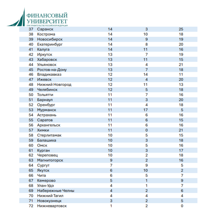 А вот в аутсайдерах оказались Магнитогорск, Сургут, Якутск, Чита, Кемерово и другие. Москва, несмотря на свою популярность, не попала в лидеры, потому что многие приезжие, заработав деньги, уезжают обратно домой покупать жилье.