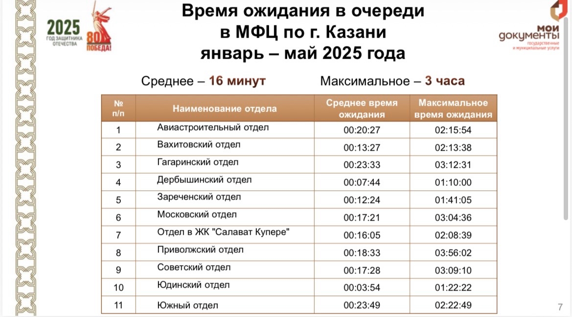 Пик ожидания в очередях местных МФЦ наблюдался в Казани с января по май, рассказала директор многофункционального центра Татарстана Ленара Музафарова. Жителям приходилось ждать приема до трех часов.