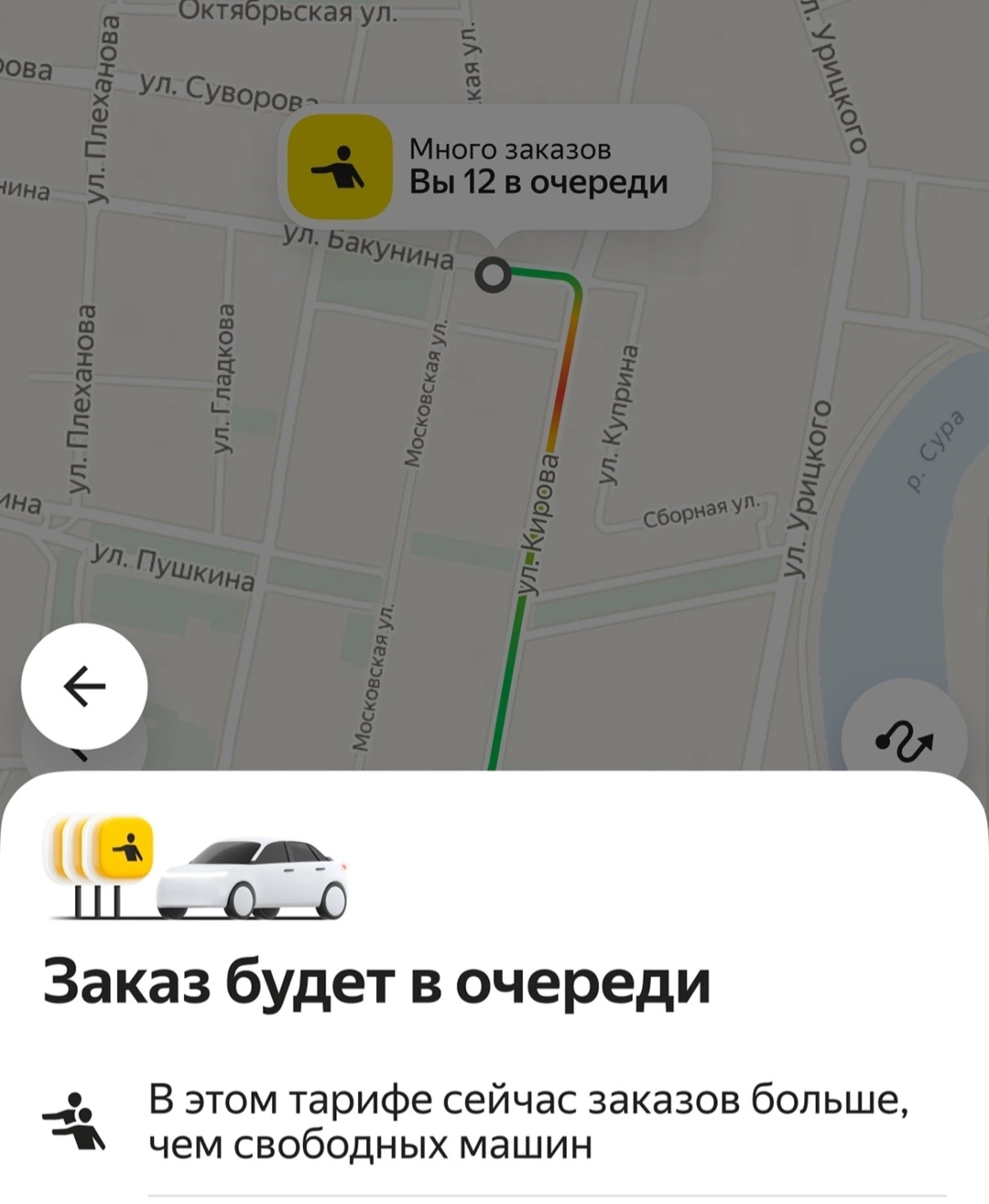 При экстремально высоком спросе у клиентов Яндекс Go появилась возможность встать в виртуальную очередь. Опцию видно при заказе такси в тарифе «Эконом». Она работает, если в городе большой спрос на такси, например, после окончания концерта или при ливне.