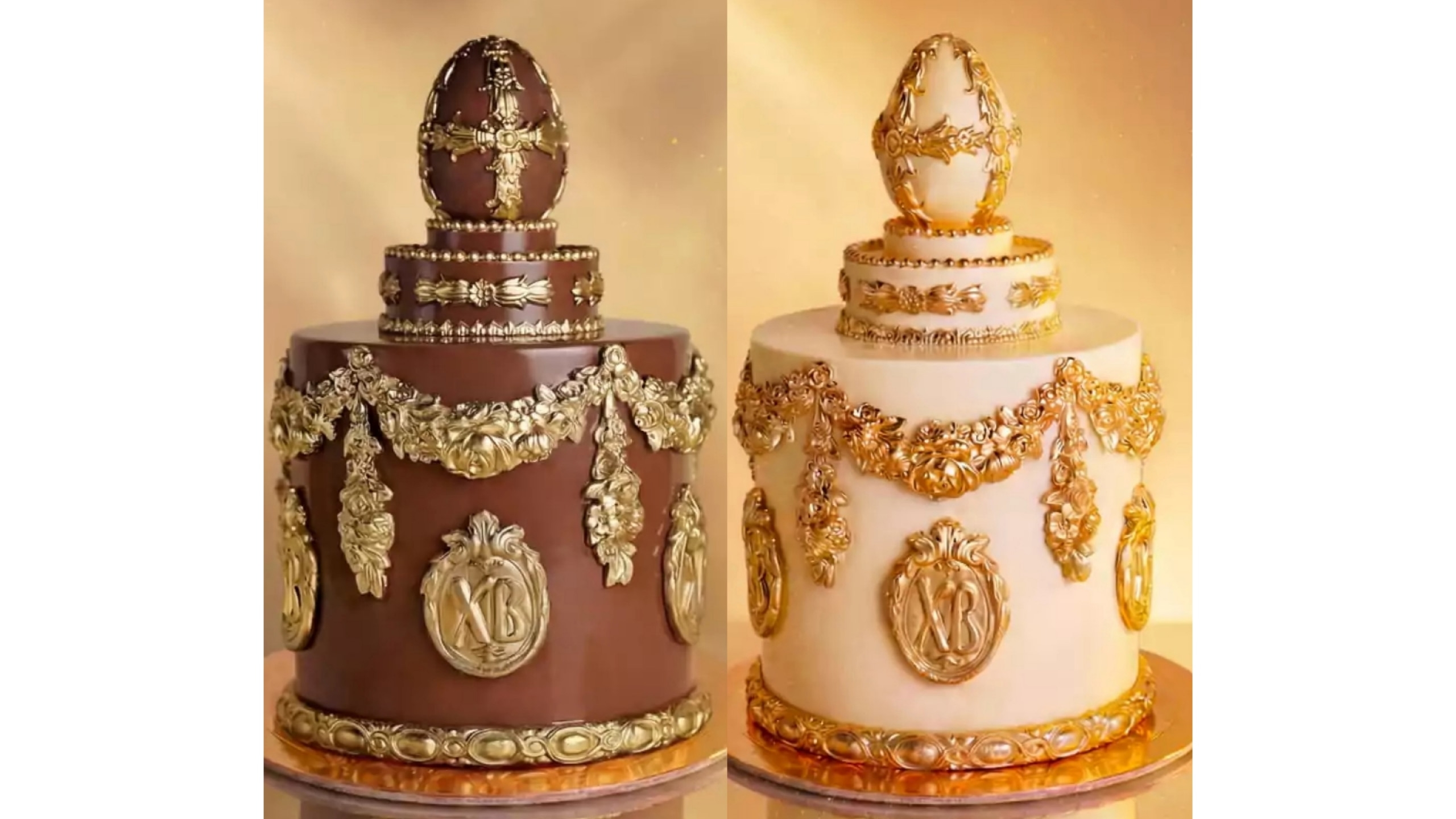 В этом же кафе продаются «куличи почти близнецы»: «Кулич в молочном шоколаде» и «Кулич в белом шоколаде». При весе в 1,5 килограмма и 1,4 килограмма соответственно они оба стоят 31 тысячу рублей. Внутри шоколадного купола — классический кулич. Украшены они съедобными яйцами Фаберже ручной работы.