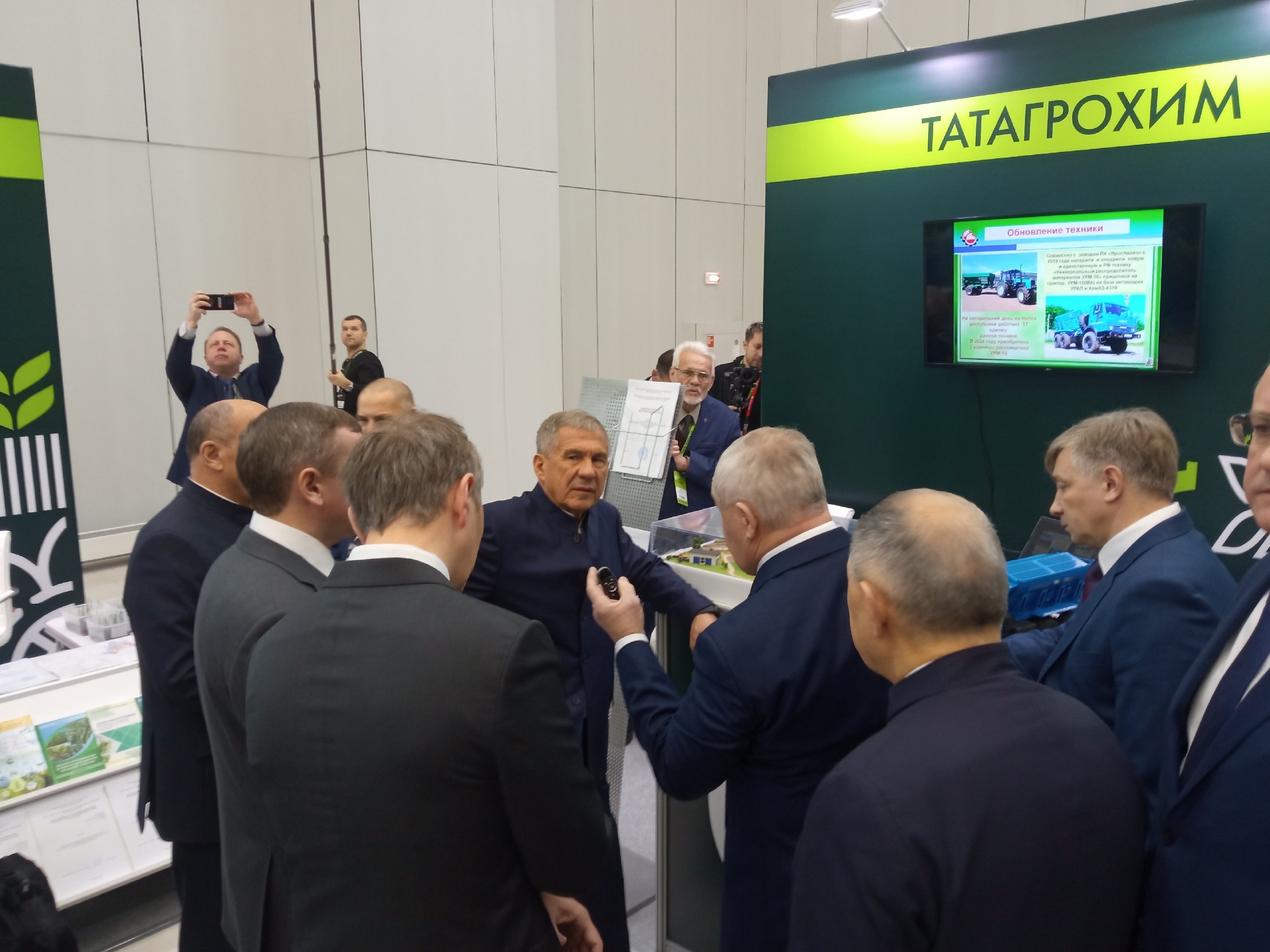 Главу республики сопровождает глава министерства сельского хозяйства и продовольствия Татарстана Марат Зяббаров. Первым стал стенд Казанского ГАУ, который показал комплексные удобрения. Всего в выставке принимают участие 300 компаний и 1,2 тысячи специалистов из разных областей. Они представляют сельскохозяйственную технику, оборудование, экспозицию по разведению животных и многое другое.