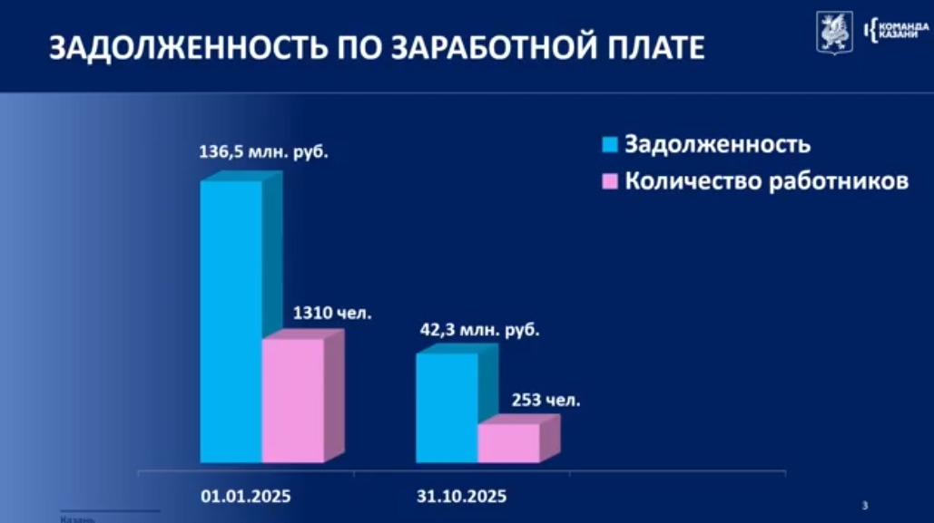 На конец октября казанские компании оставались должны 253 работникам. Отмечается, что с начала 2025 года задолженность упала в несколько раз. В январе работодатели города должны были 136,5 миллиона рублей 1,3 тысячи казанцев.