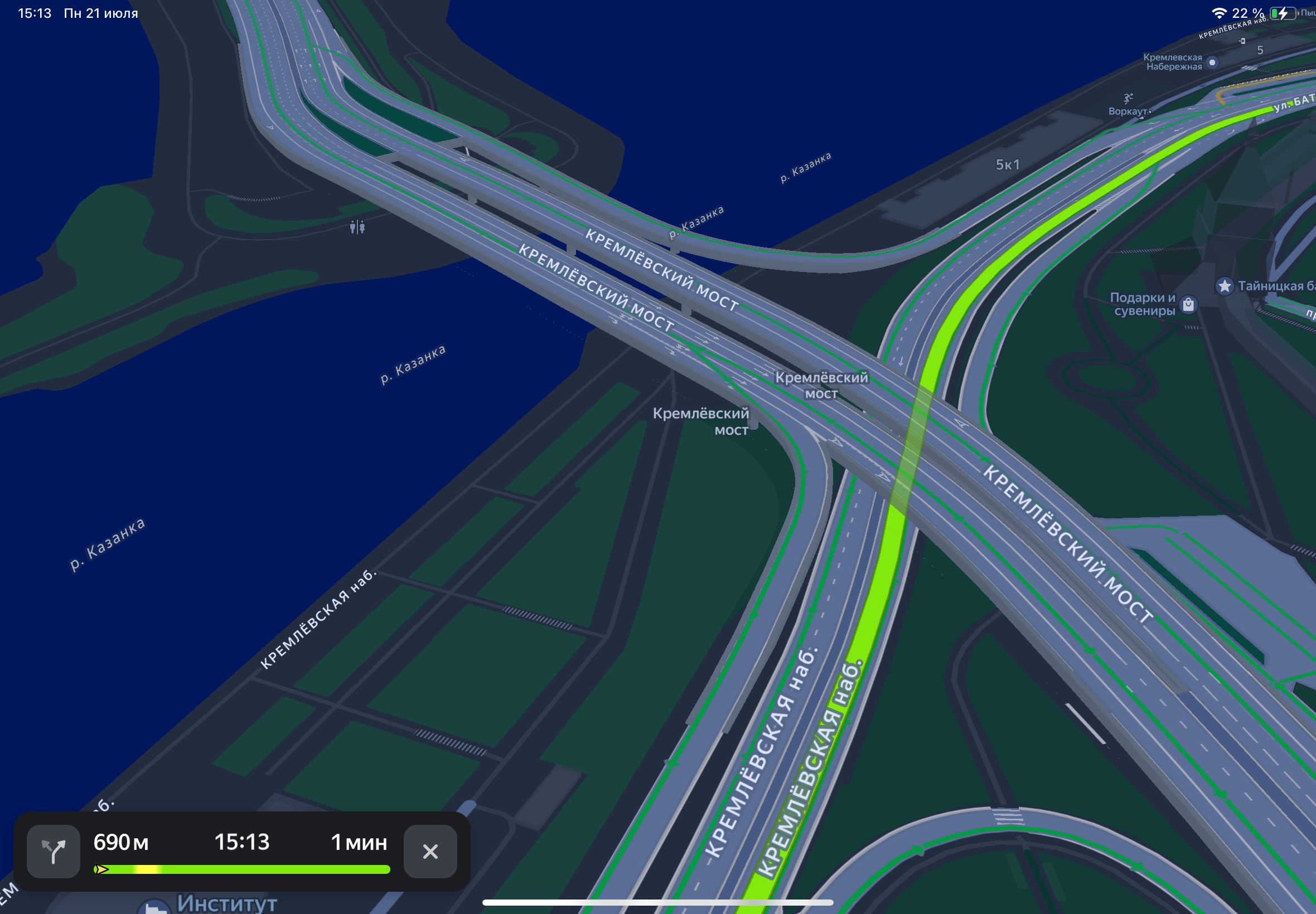 В Яндекс Карты добавили детальные автомобильные развязки, мосты и туннели Казани