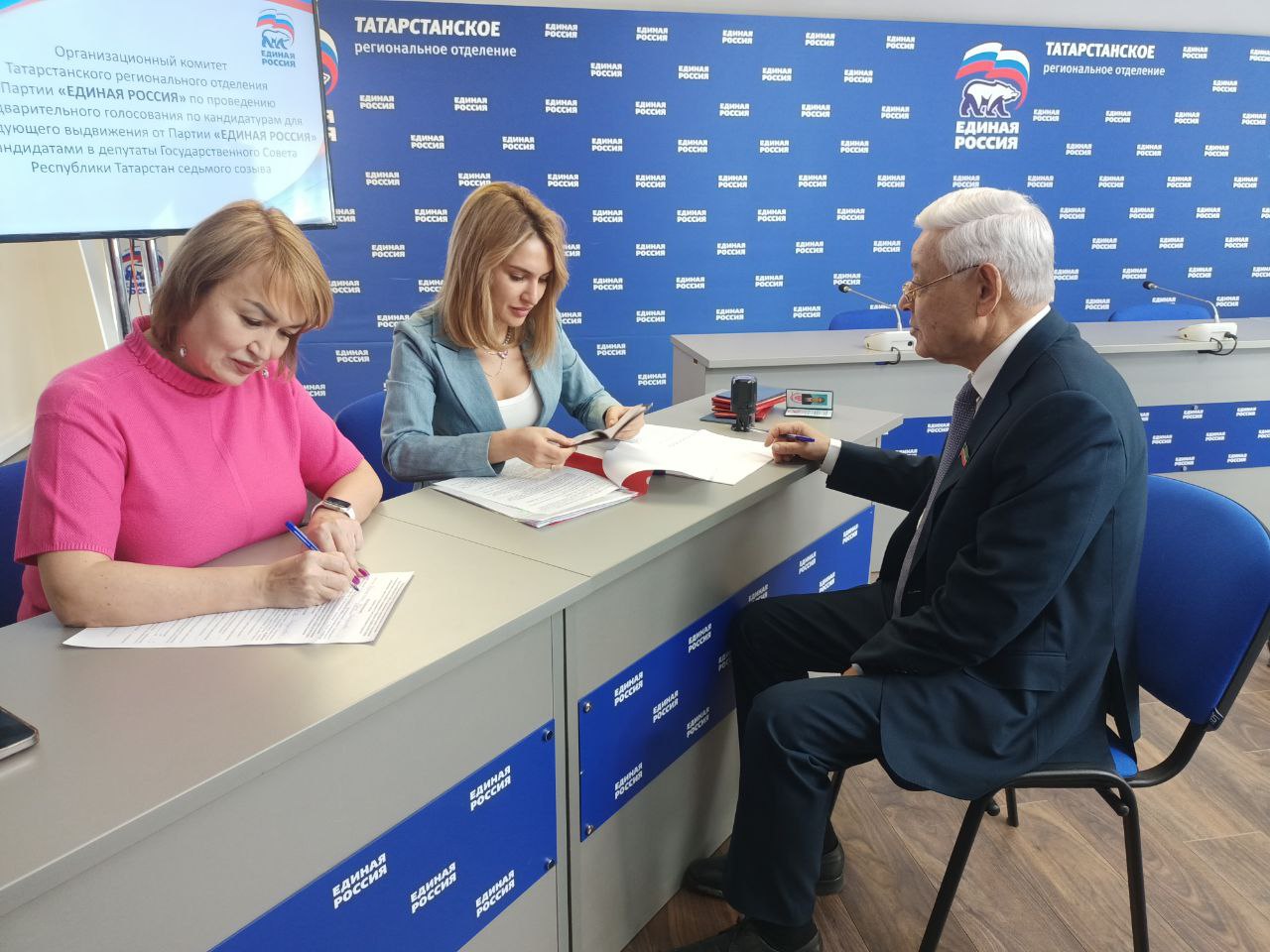 В офисе татарстанского отделения «Единой России» (где была заявлена подача Фаридом Мухаметшиным заявки на участие в предварительном голосовании) должна была разрешиться главная политическая интрига предстоящих выборов в Госсовет: останется ли Мухаметшин председателем республиканского парламента? На этом посту Фарид Хайруллович с 1998 года. Летом прошлого года, выступая перед журналистами, осторожно сказал, что на выборы в Госсовет следующего созыва он, быть может, не пойдет. Но уже в январе слегка изменил мнение: дескать, время сложное, поэтому, возможно, и останется. Тем интереснее было - объявит ли Мухаметшин об окончательном решении идти на новый срок?