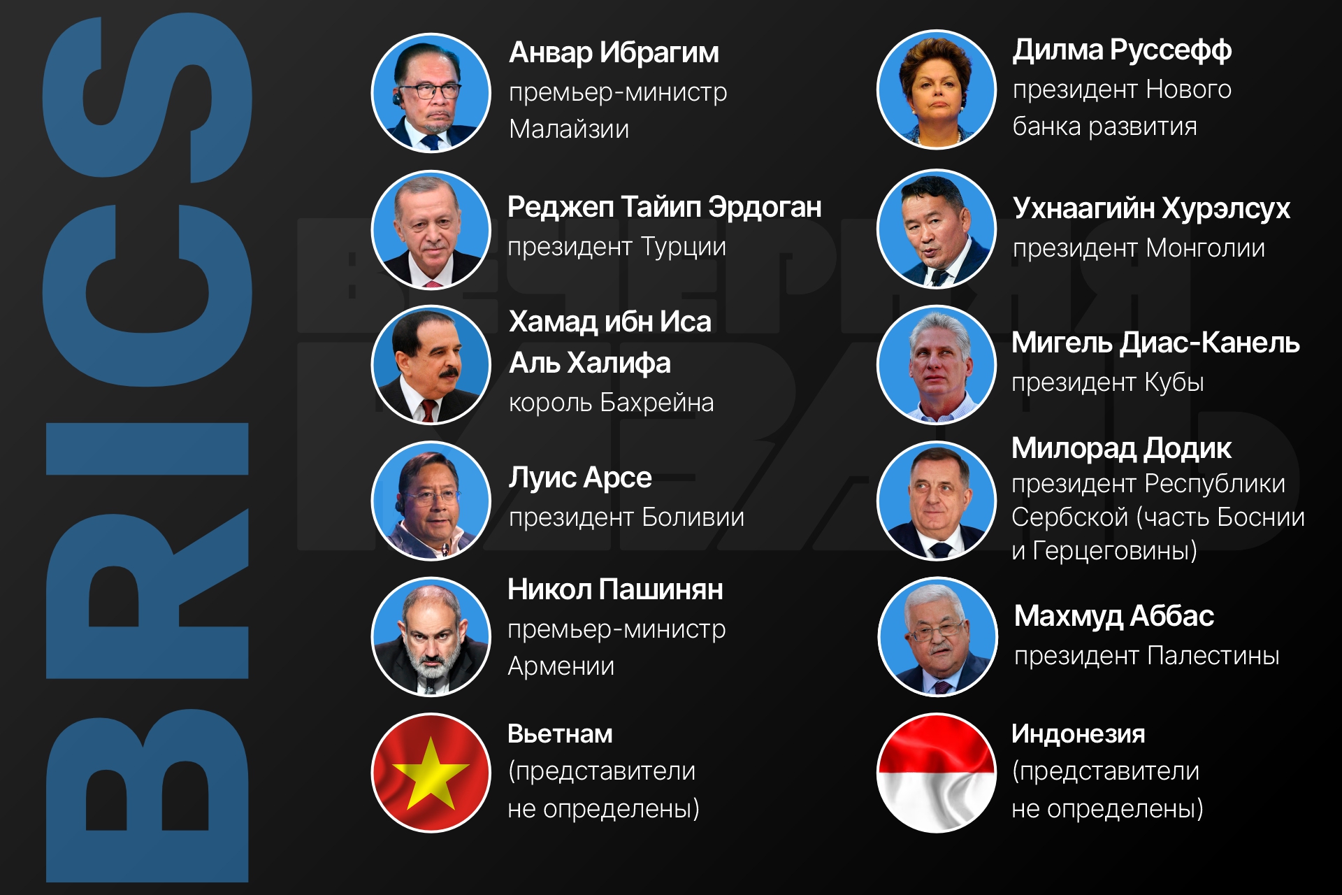 Всё больше стран заявляют о заинтересованности в БРИКС. Приглашены минимум 36 лидеров государств, более 30 из которых подтвердили свое участие.