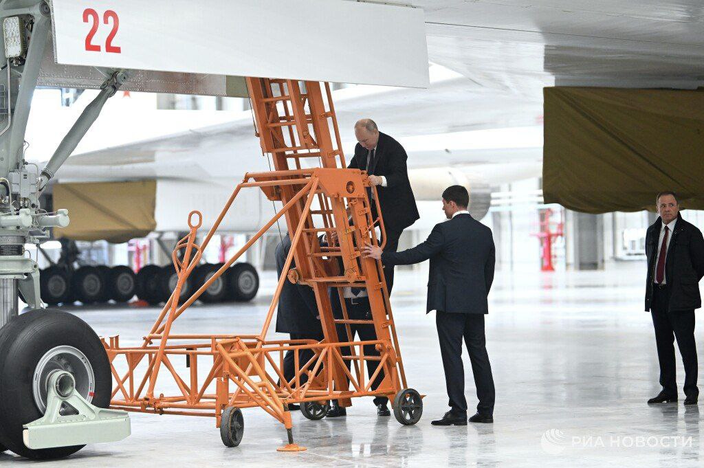 После прибытия в татарстанскую столицу Путин осмотрел Казанский авиационный завода имени С.П. Горбунова. Главе государства представили четыре модернизированных Ту-160М.
