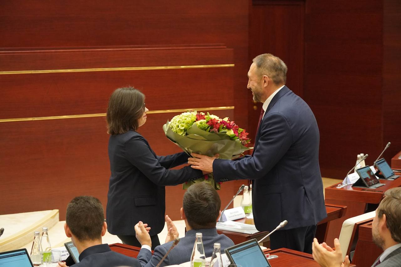 Мухаметшин пожелал премьер-министру Татарстана успехов, отметив необходимость подарить ему цветы. Однако Песошин, видимо, поскромничал, попросил принести их позже.