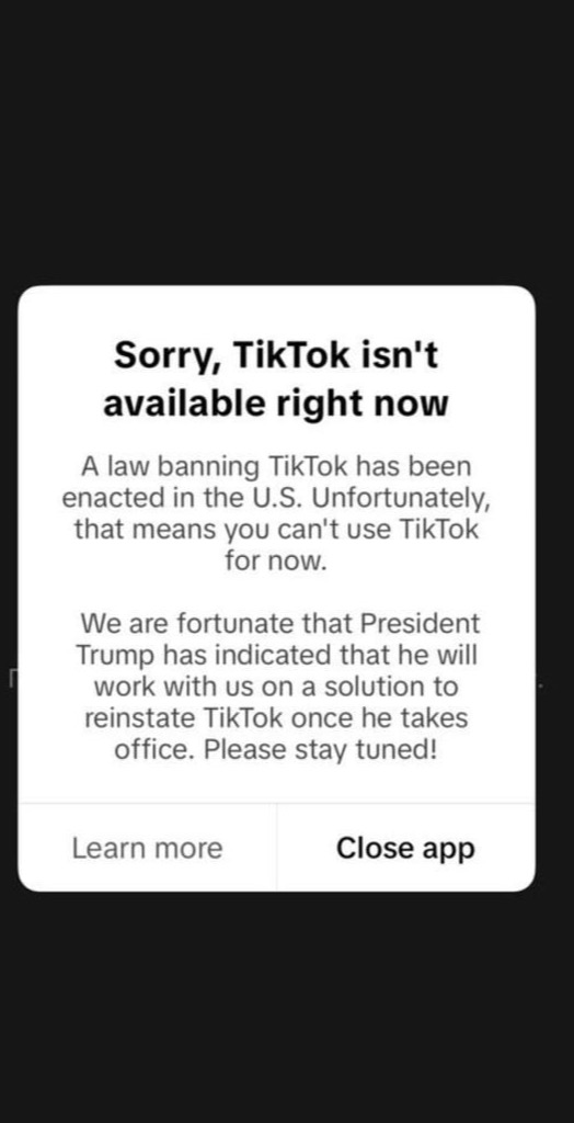 С 17 января TikTok заблокирован в США решением Верховного суда страны. Согласно закону, принятому судом, власти имеют право запретить китайское приложение, если его владелец не согласится продать соцсеть. Впрочем, новый президент США Дональд Трамп, как сказано в сообщении приложения, уже «выразил готовность вернуть TikTok» после вступления в полномочия президента, сообщает телеграм-канал BAZA.