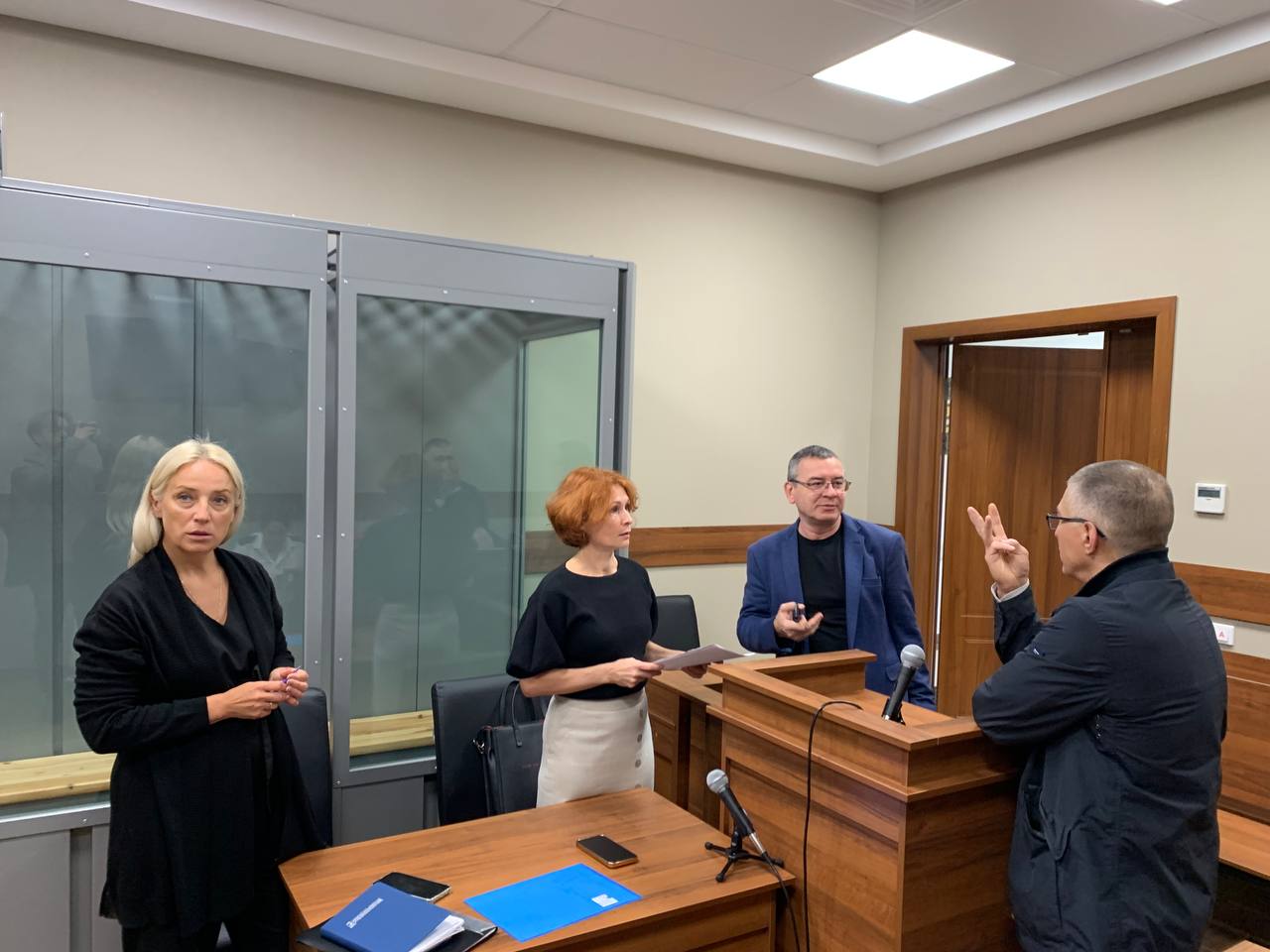 Оставшиеся подсудимые вошли в зал заседания за несколько минут до начала процесса – дружной цепочкой они сели на скамью и так же дружно закрывались от камер. Доходило до комичного: один из обвиняемых говорил своим «коллегам» кодовое «Фоткает!» – и вся троица закрывала лица, дошло даже до оскорбления представителей прессы.