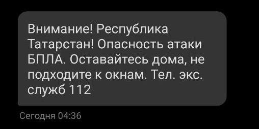 МЧС разослало смски татарстанцам об угрозе атаки беспилотника.