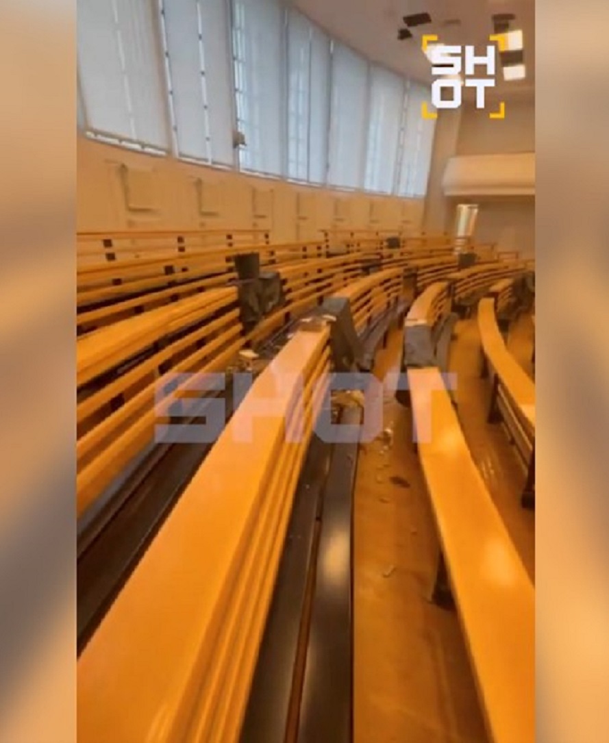 Пострадавших нет. Как пишет телеграм-канал SHOT, лекция продолжилась, хотя с потолка капал растаявший снег, а пол был весь покрыт лужами.
