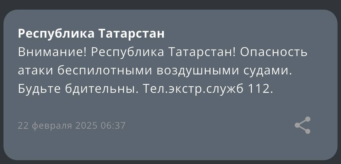 МЧС предупредило жителей Татарстана об угрозе атак беспилотников. В связи с этим аэропорты Казани и Нижнекамска (Бегишево) временно прекратили прием и отправку авиарейсов, сообщили в Росавиации.