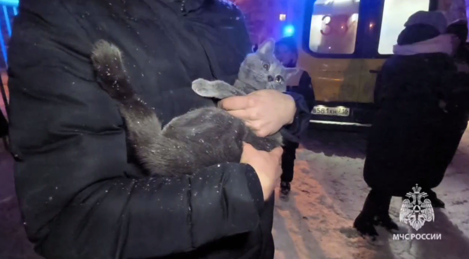 В Казани ночью разгорелся пожар в пятиэтажном доме на улице Гудованцева. Когда пожарные прибыли на место, жильцы уже успели покинуть подъезд — 15 человек выбежали на улицу, не забыв прихватить своего большого серого кота.
