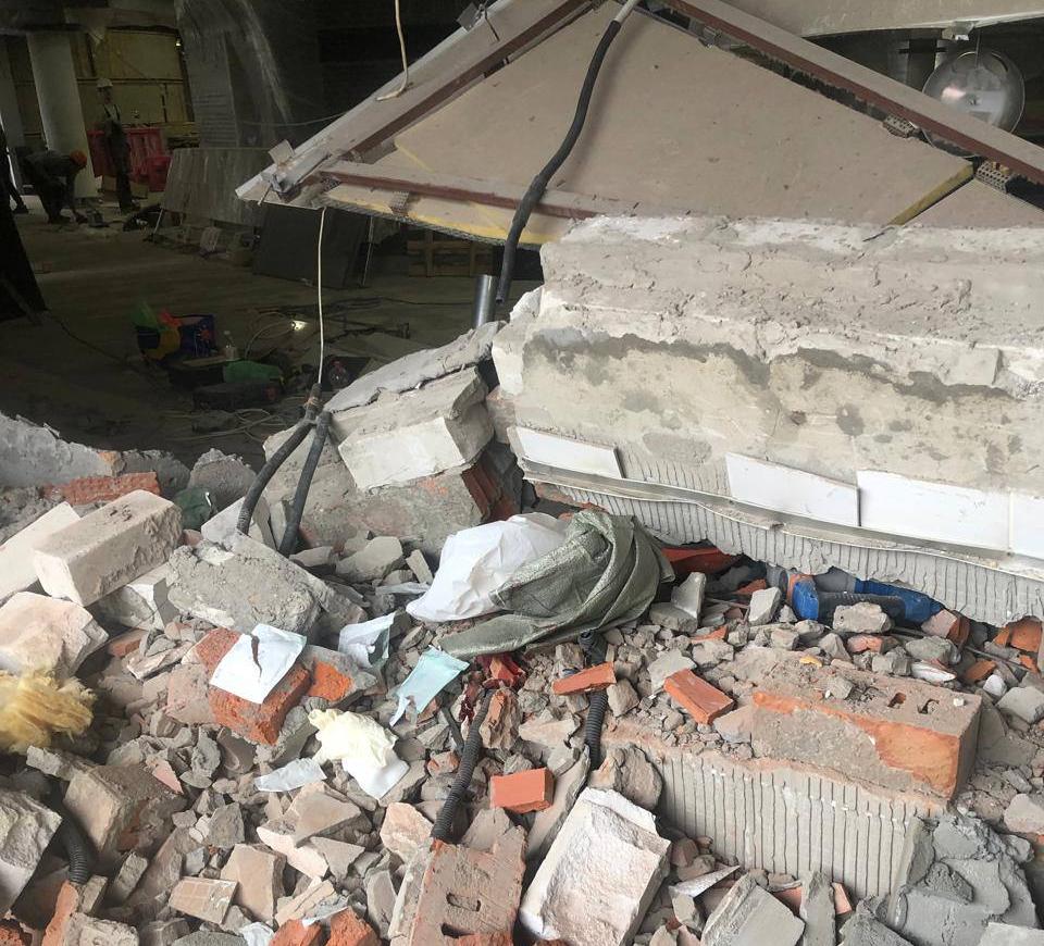 Рабочий, пострадавший под кирпичами в «Пирамиде», получил сотрясение мозга