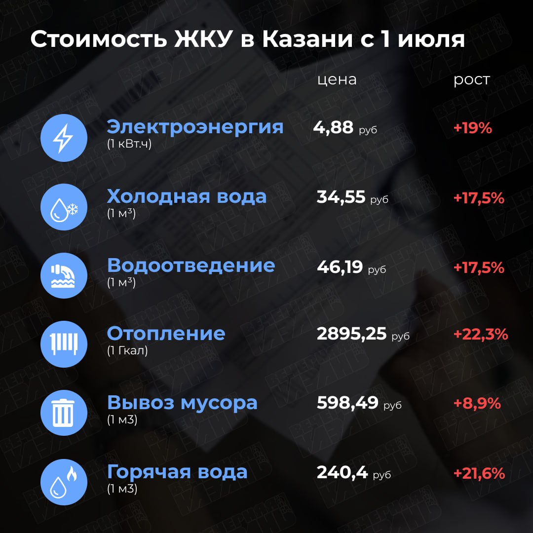Конечно же, рост тарифов. С началом июля в Татарстане рекордно увеличилась плата за жилищно-коммунальные услуги. Цены вырастут на 17,5-22,3 процента в зависимости от муниципалитета.