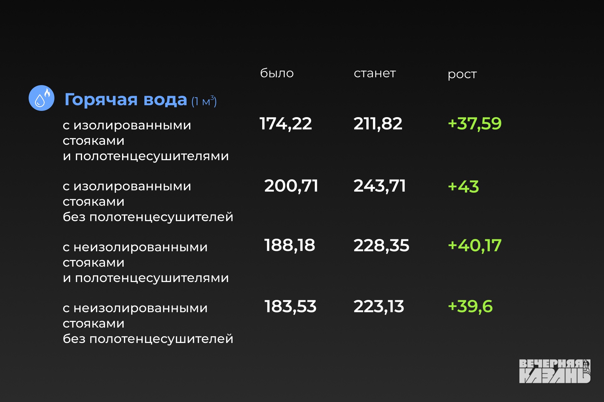 В этом году, в 43 муниципальных образованиях, включая Нижнекамск, Казань, Набережные Челны, Бугульму, Агрыз и другие, услуги подорожают на 22,3 процента. Это максимально допустимое отклонение от среднего уровня, разрешенное законом. В списке — 21 город, 15 поселков городского типа, где живет более 1,6 миллиона человек, что составляет около 40 процента населения республики.